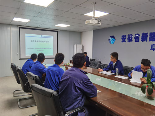 2021年8月17日晚,运维事业部阜阳运维中心在会议室组织全部管理人员进行了“新点造价软件”学习培训。