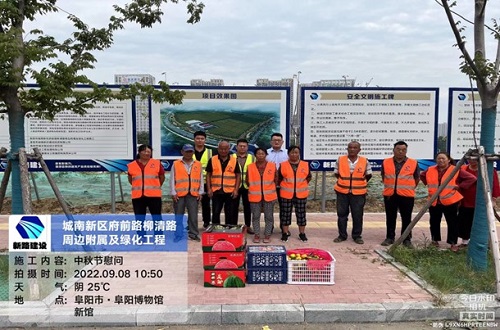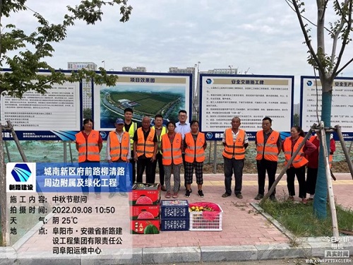 为了感谢一线工人的辛苦劳作,9月8日,在城南业主、项目经理的带领下,带着慰问物品出发。首先,在领导的带领下来到一线,对绿化班组进行走访慰问,为他们送去中秋节的慰问礼品,清甜爽口的西瓜,酸甜的橘子,甜脆的大枣。拉开了部门“中秋节慰问”活动的序幕。同时,陈部长提醒各工人要注意施工时的安全,做好安全防范等工作,注意施工环境中的自我保护,并鼓励大家合理安排作息时间,确保平安过节。