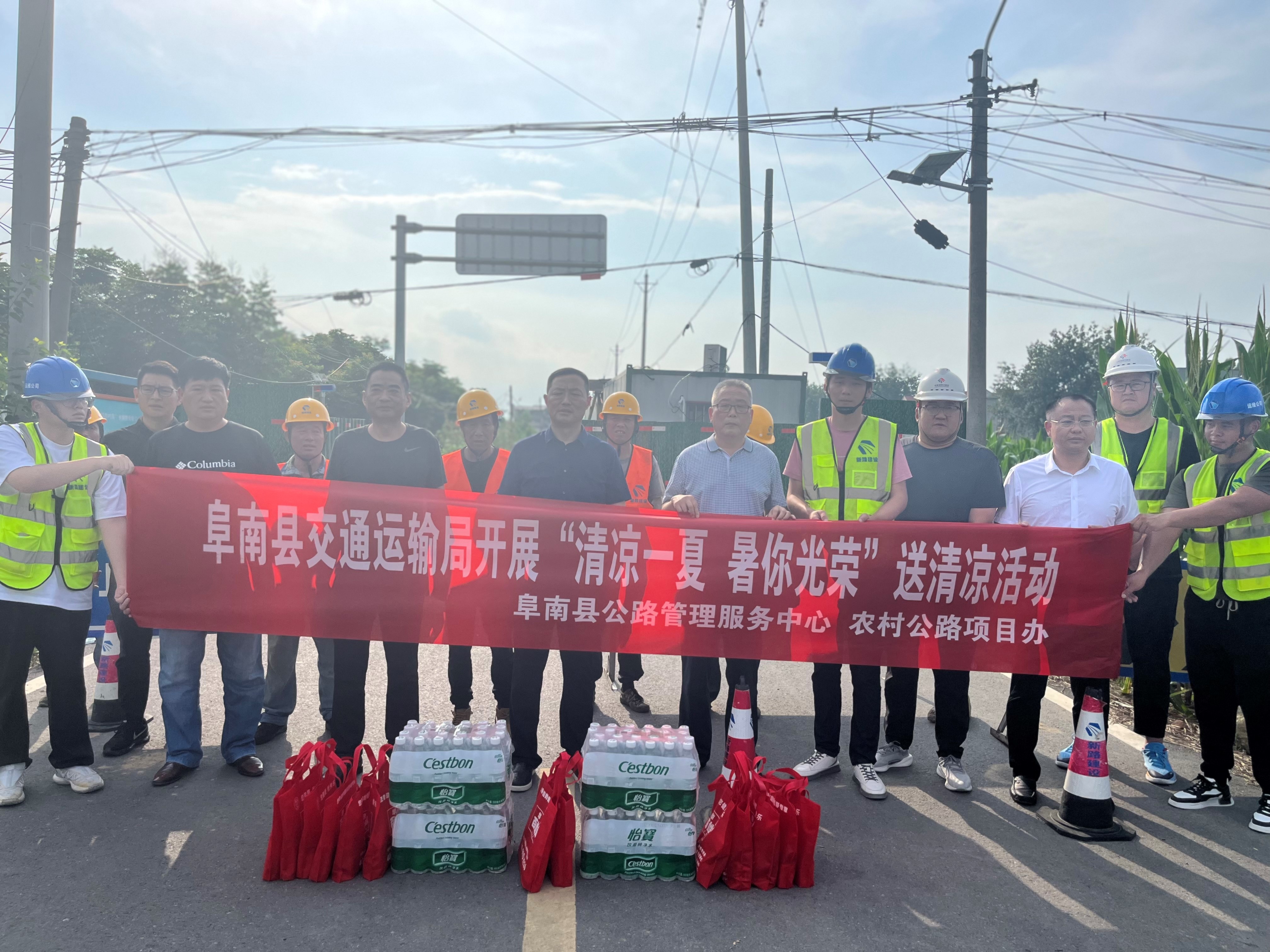 2023年7月24日,阜南县交通运输局组织开展“清凉一夏·暑你光荣”送清凉慰问活动,阜南县交通运输局党组书记、局长张涛,副局长张尚武,阜南县公路管理服务中心主任杜杰;mansion88明升阜南县2023年农村公路养护工程02标项目部(以下简称养护工程02标)相关人员陪同。