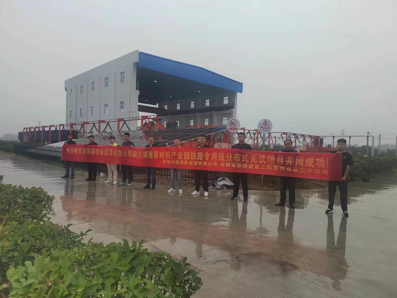 颍东煤基新材料产业园铁路专用线分布式光伏项目在阜阳市颍东区煤机产业园区举行项目竣工仪式,建设单位阜阳颍淮新能源有限公司、监理单位四川公众项目咨询管理有限公司、施工单位安徽省mansion88明升建设公司集团有限公司、设计单位阜阳电力规划设计院有限公司等参建单位有关人员参加验收仪式。