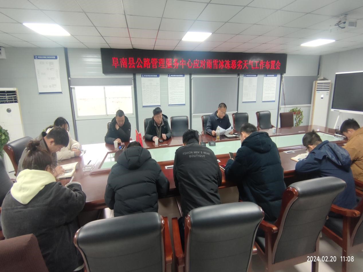 2024年2月20日上午10点,阜南县农村公路管理服务中心在阜南运维中心会议室组织召开应对雨雪冰冻恶劣天气工作布置会。根据春节气象信息专报(阜南气象局第28期)指示,24日前我县有较明显的雨雪天气过程,阜南运维中心全体职工立即进入备战状态,积极应对龙年第二场雨雪冰冻恶劣天气。
