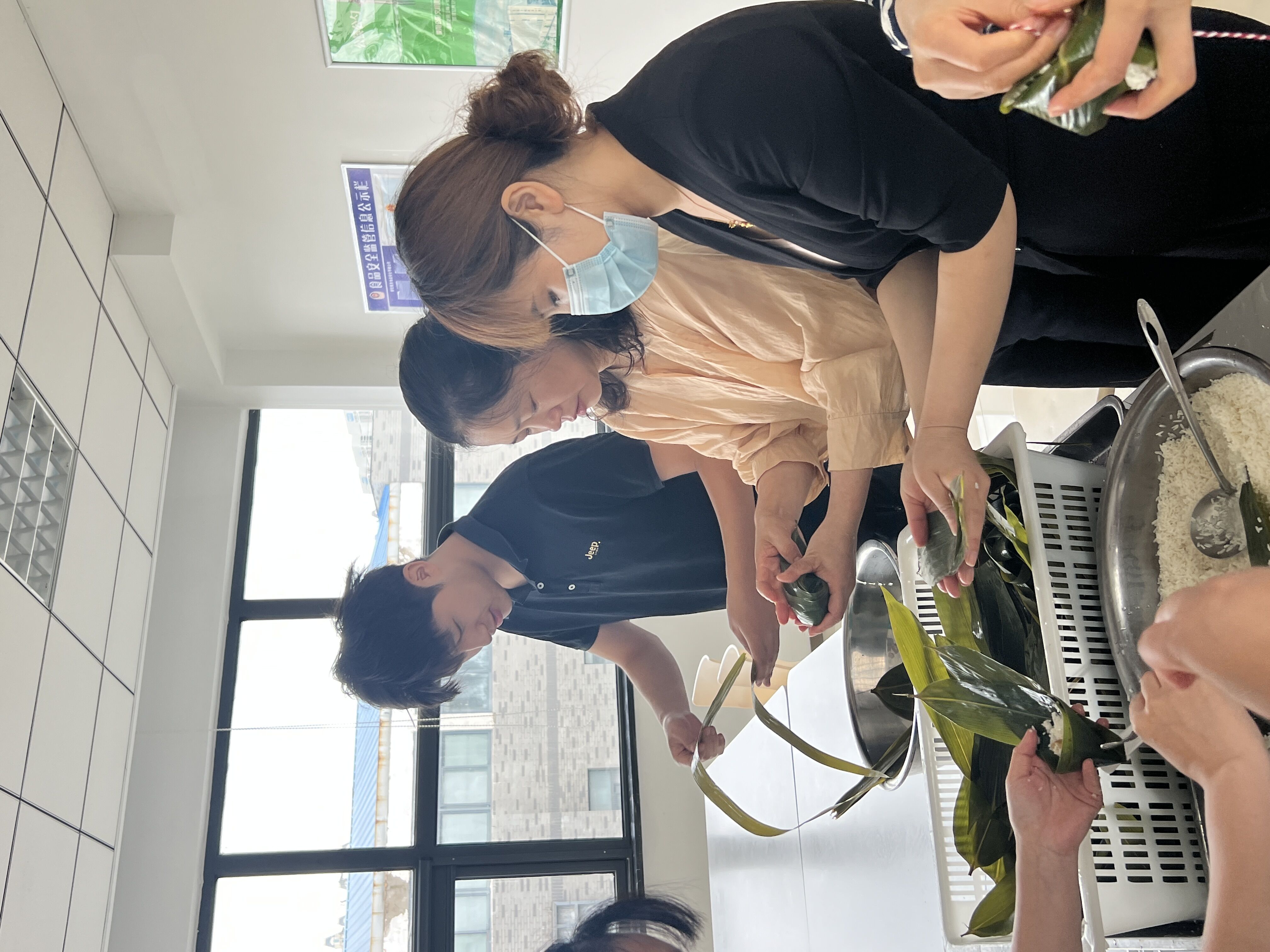 活动现场粽香弥漫,糯米、红枣、豆沙、粽叶等包粽子的材料早已整整齐齐摆放在食堂的桌子上。大家围拢在桌子旁,一边交流着包粽子的技巧,一边畅谈着端午节的习俗和传统文化的内涵。在欢声笑语中,一只只寓意深厚的粽子在大家的巧手中逐渐成形。