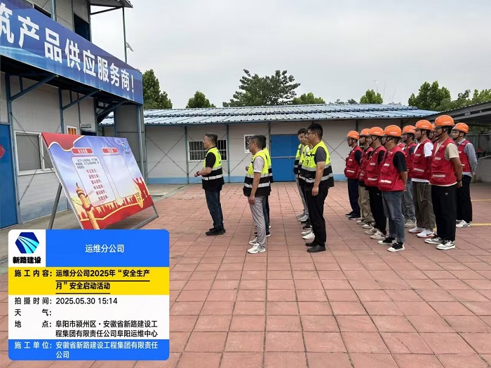 为深入学习贯彻落实习近平总书记关于安全生产的重要论述和重要指示批示精神,2025年5月30日,运维分公司在阜阳城南运维中心,组织在建项目人员开展2025年“安全生产月”启动宣誓活动。