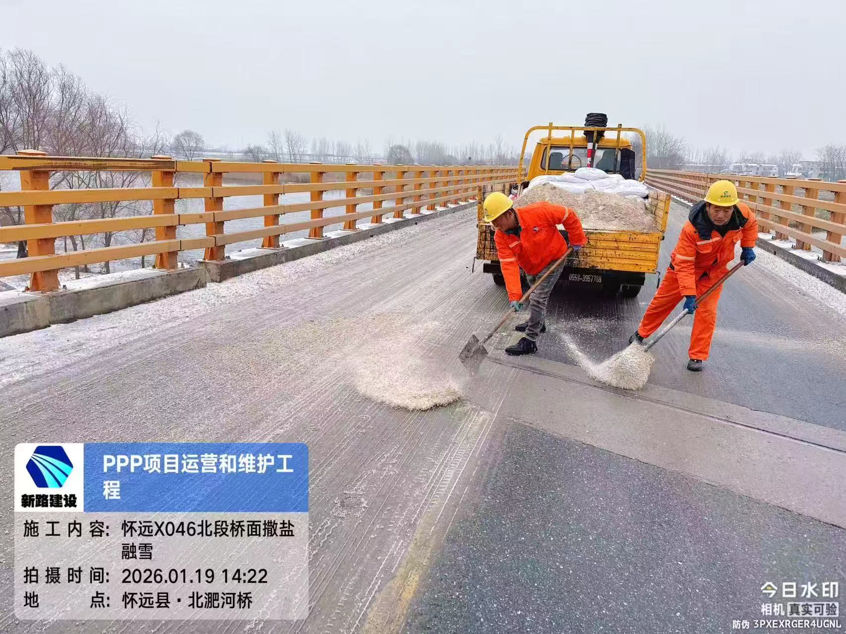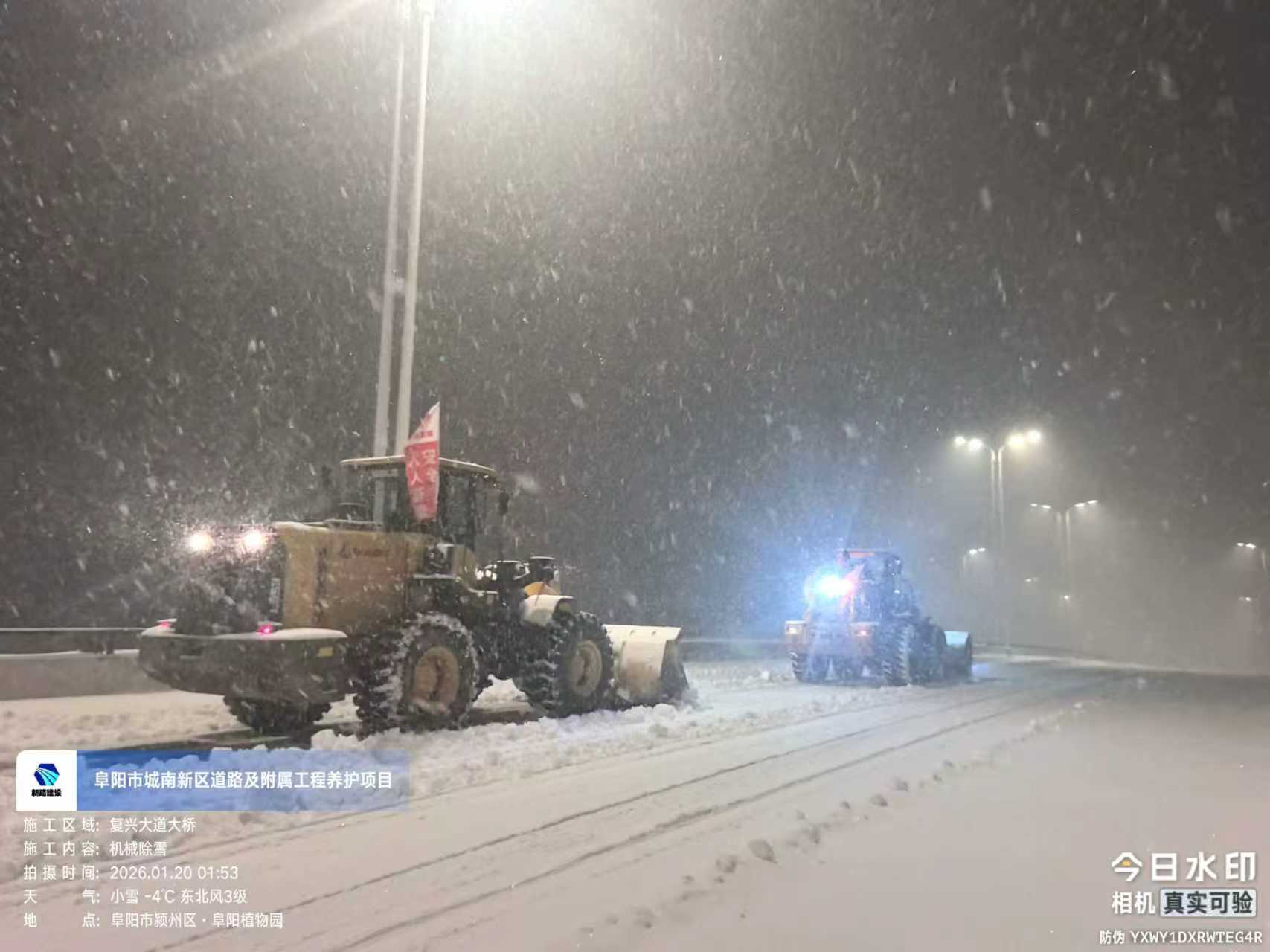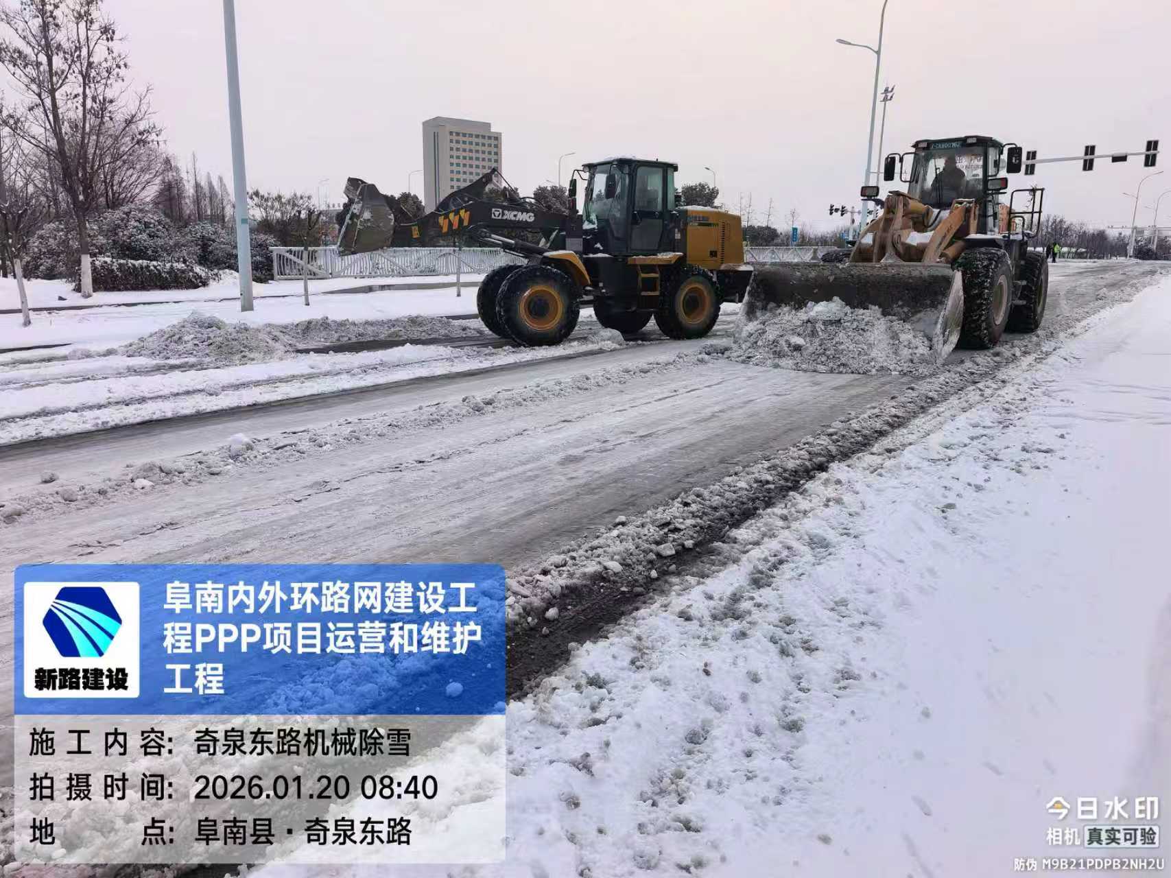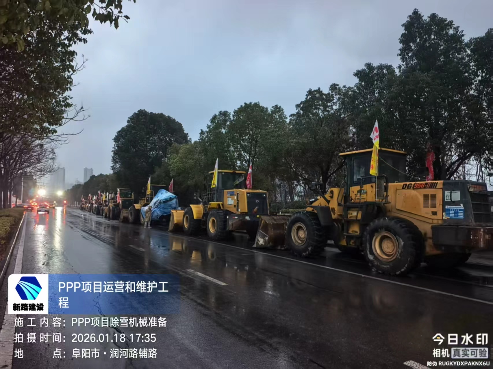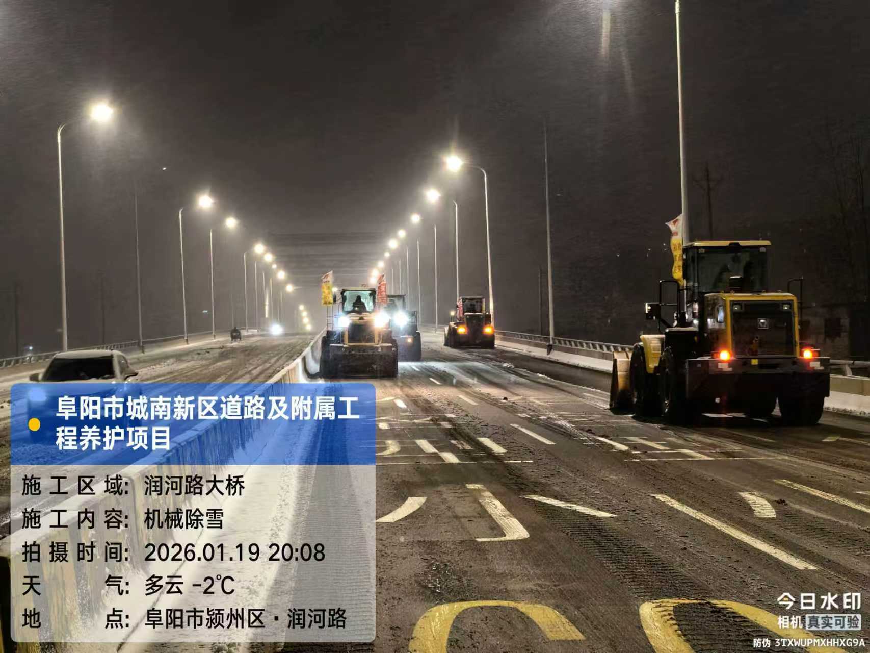 1月19日,阜阳市迎来低温雨雪寒潮天气。mansion88明升集团闻“雪”而动、迅速响应,第一时间组织运维分公司及各在建项目部全面开展铲冰除雪作业,全力保障辖区道路安全畅通。