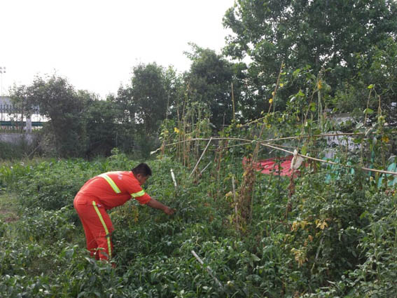 在项目部刚落户到收费所的时候,我部看到后院有块空地杂草丛生,既不好看,也浪费资源,于是发动大家共同努力,开辟出一块菜园。这个举措不仅丰富了职工的业余生活,更使职工们在劳动中得到了锻炼,体会到丰收的快乐。通过劳动,让职工们增强了主人翁意识,体会到了农民耕耘的艰辛,自觉养成勤俭节约的良好习惯,同时也培养了劳动观念和团队合作的精神。