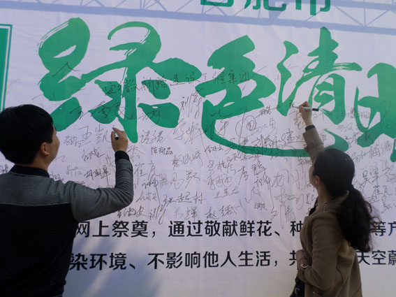 全体员工在文明祭祀承诺墙签字