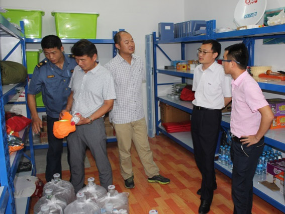 安徽环宇公司滁新、济广高速阜阳段桥梁养护工程项目负责人重点向参观人员介绍了安全管理、制度上墙、标牌摆放、机具摆放、日常管理等方面的标准化建设。王科长要求大家认真倾听,仔细观摩学习,主动询问取经并积极做好记录工作。