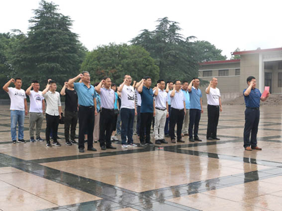 冒着绵绵细雨,在集团总支副书记韩恒忠同志的带领全体党员高举右手庄严宣誓,重温自己对党忠诚的誓言,表达为党的事业奋斗终身的决心。随后集团总支书记唐谦同志现场为大家上了一堂《缅怀烈士、重温历史、不忘初心、牢记使命》专题党课,要求大家永远铭记共产党人的初心。仪式最后,全体党员向革命先烈默哀、三鞠躬,深情寄托对烈士的无限哀思,深切缅怀英烈们的丰功伟绩。