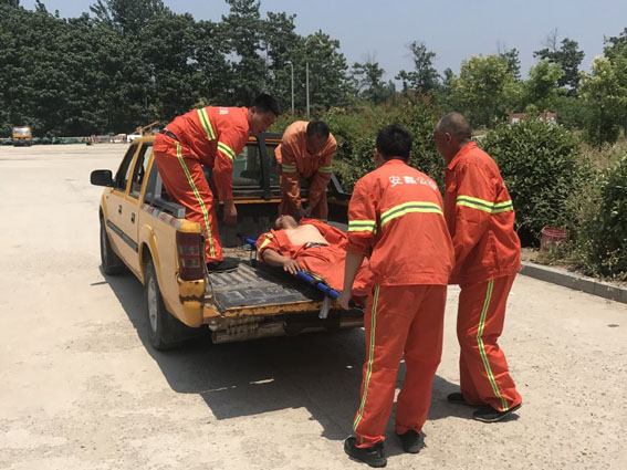 应急演练开始前,由项目经理对应急演练预案操作流程进行了讲解,随后对过程中的注意事项进行了交待,提出大家一定要服从指挥有序进行。部署好相关工作后,随着一声令下,演练正式开始。我项目发现中暑人员后相关人员立刻向项目负责人汇报,项目负责人指示现场人员将中暑人员扶至阴凉处,随后立即安排安全员采取急救措施,并指定项目车辆进行救援,及时把中暑人员送到医院进行救治。整个过程井然有序,取得了不错的效果。