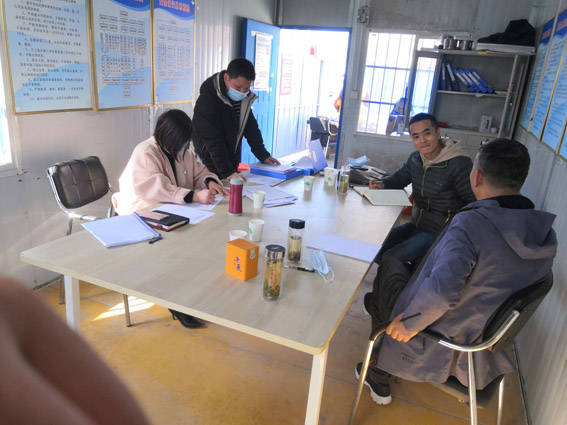 检查组重点查看工程施工现场的防控物资、防控措施、相关台账及施工现场安全防护情况,并对各项目部的安全管理工作给予了肯定。在复工前的巡查中,张仕龙经理提出部分项目部存在重视程度不足、风险意识较弱的问题,防疫工作不够规范,没有留下管理痕迹,并安排工程安全科及时加强监督和指导。在阜阳市城南新区道路及附属工程养护项目一标段、砀山县城市污水处理提质增效一陈庄沟城区部分段治理工程等新开工项目部施工现场,张仕龙经理针对现场安全标志标牌不适用、不牢固等现象要求工程安全科重新设计并尽快投入使用,随后认真询问了项目部在实施过程中遇到的困难以及对项目部生产工作的想法和建议。
