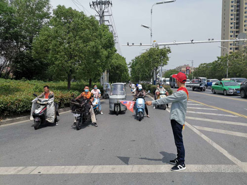 5月15日上午,正值上班高峰期,阜阳市开发区新安大道与经二路交叉路口车流、人流密集。在路口斑马线前,一抹亮眼的“志愿红”守护在行人前方,他们是来自mansion88明升运维事业部的员工,正在积极协助管理交通秩序,开展文明交通疏导志愿服务活动。