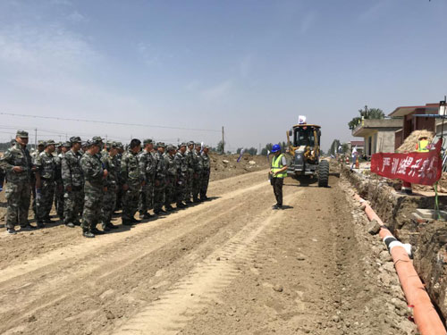2020年5月26日,早上9点武装部吴部长和交管站张主任带队到阜阳市颍州区2020年农民公路养护01标施工现场进行道路应急抢险演练。本次学习任务主要分2个阶段,涉及道路修建工艺流程、道路机械实操项目的学习。