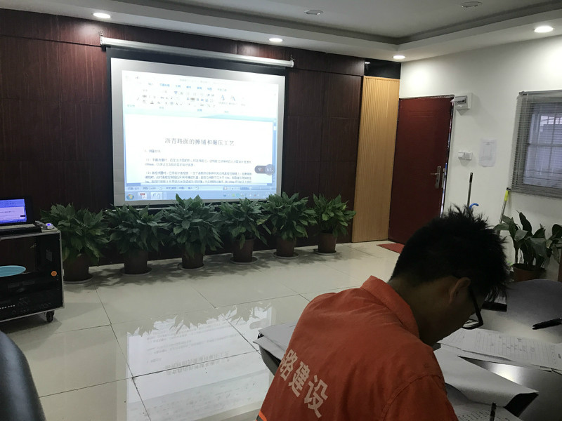 期间,工程部负责人施立国详细讲解了沥青摊铺的施工方法及顺序,以及在施工过程中质量控制和安全保障控制等内容,同时培训采用了签到、讲解、考试和评分的方式,让所有员工对已有知识进行巩固加深,并认识到自身业务知识的欠缺,在今后的学习中做到有的放矢。