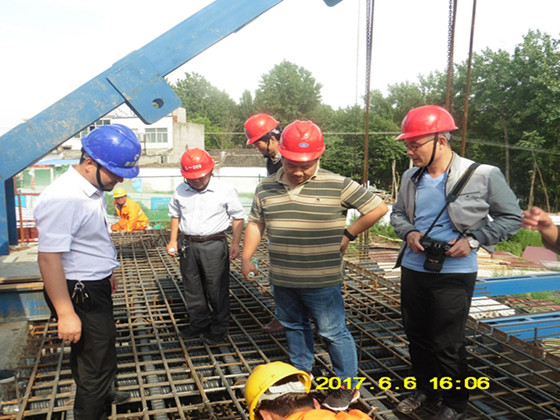 阜阳市重点局总工程师虞培玉一行查看钢筋绑扎情况