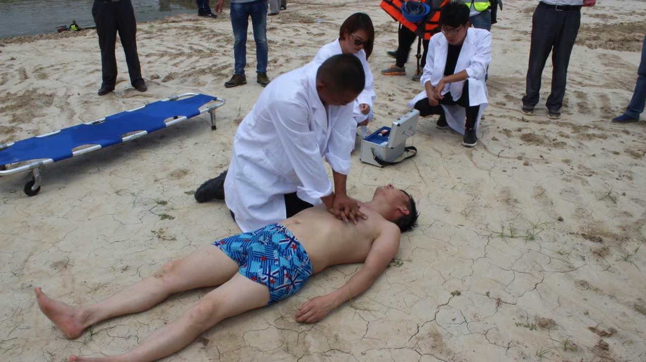 接着,蓝天救援队教导员又分项讲解了自救常识与救助动作,教会大家一些简单的救护办法,如利用漂浮物进行自救、对溺水者实施人工呼吸、心肺复苏等,演练中员工们积极参与其中,就求救、互救、自救等方面进行了现场亲自体验。通过全体员工的参与,模拟溺水现场实践演练达到了预期的效果,使防溺水知识入脑入心。最后,阜南县重点局副局长孙健表示:本次活动的取得圆满成功意义重大,离不开项目部各位员工的辛苦付出。。希望我部在以后的安全工作中,以预防为主,再接再厉。