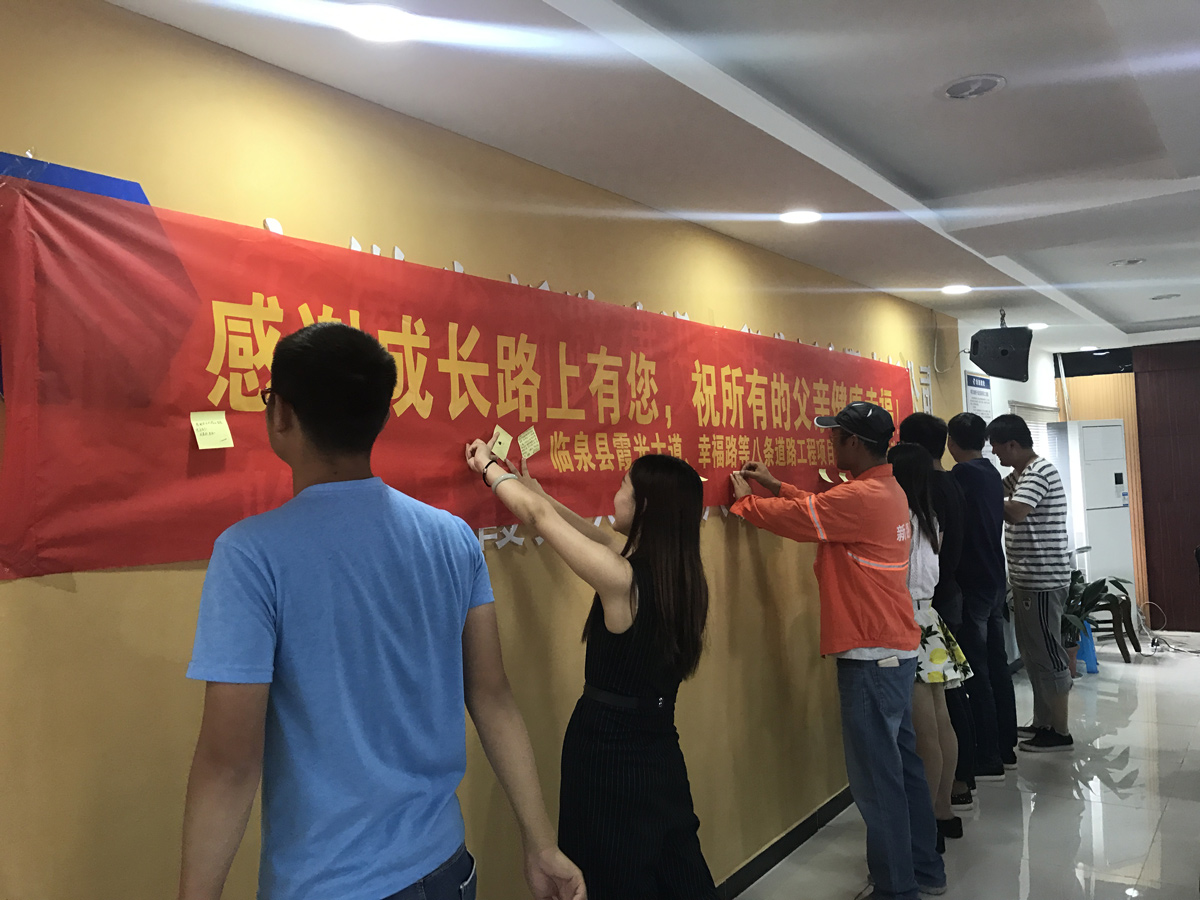 本次活动以多种形式展开,项目部员工每人或在便签上写下自己想对父亲说的话贴到条幅上,或是给父亲打个电话,送去温暖的话语,亦或是为父亲准备一份贴心的礼物。不管形式如何,都表达了大家对父亲浓浓的爱。