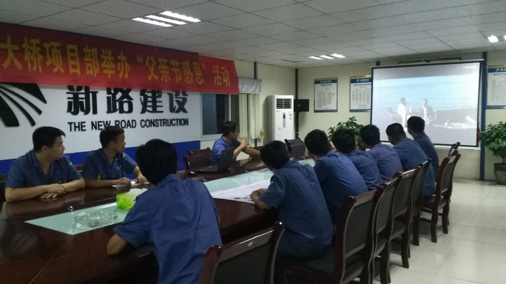在父亲节来临之际,我部于2017年06月18日在项目部会议室举行“感恩父亲节”活动,项目部全体员工观看了以父亲为题材的影片《海洋天堂>。通过观看影片让员工们学会珍惜、感恩、回馈父母的关爱,让员工们在生活中思考谁是我最应该去关爱的人,懂得父亲节的含义,明白爱的沉静与伟大,做一个对自己负责、对父母负责、对社会负责的人!