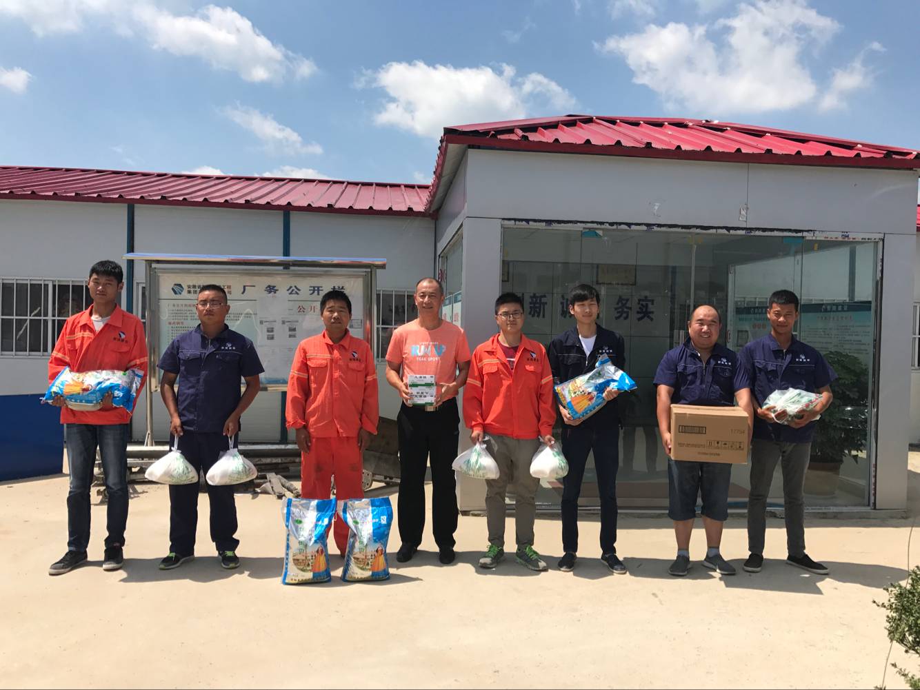 2017年7月13日上午,集团公司领导来我部看望慰问高温酷暑里奋战在工程建设一线的职工,并送来了绿豆、白糖、风油精、花露水等防暑降温用品。让我们在这个炎炎夏日中感受到了一份清凉和关怀。