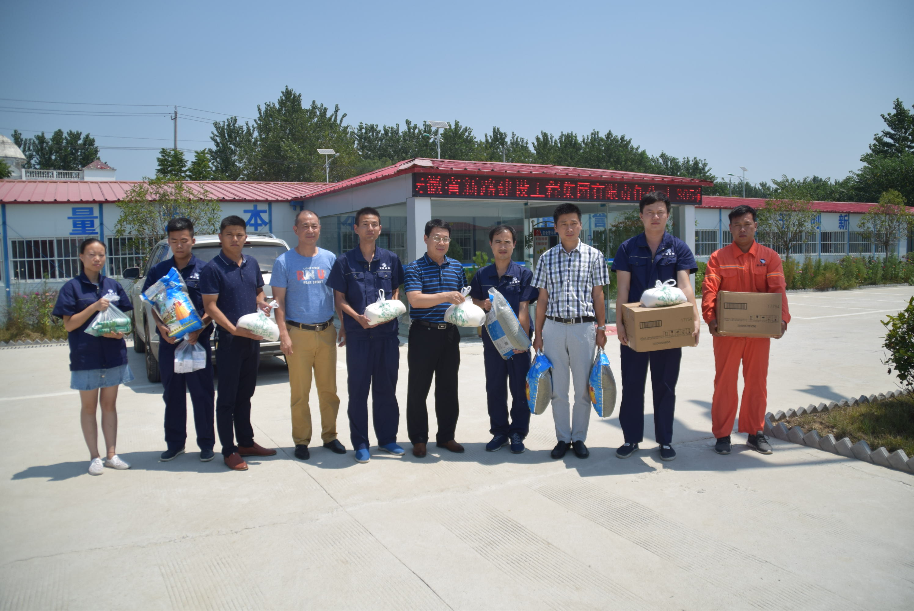 连日来,气温节节攀升,酷暑考验着坚守在工作一线的广大职工,更牵动着集团公司领导们的心。2017年7月25日,公司总经理韩恒忠、工会主席冯贺等一行满载防暑物资来到我部,看望慰问了一线人员,送来了风油精、花露水、绿豆、白糖等防暑降温物品。