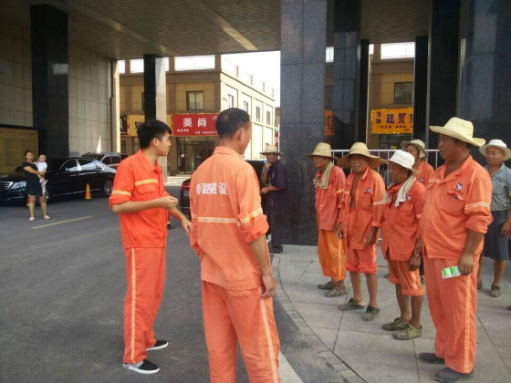 2017年8月18日,我部于幸福路中段沥青现场组织人员进行班前会活动,并对现场施工人员进行防暑降温的安全知识教育培训。