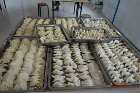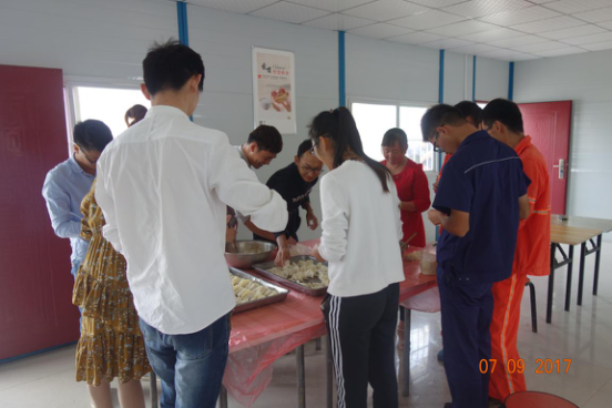 为加强我部各成员之间的合作与交流,也为给我部所有成员们的工地生活留下一页美好的回忆,利用阴雨天气,即9月7日上午十点在项目部餐厅举行了“包饺子”活动。