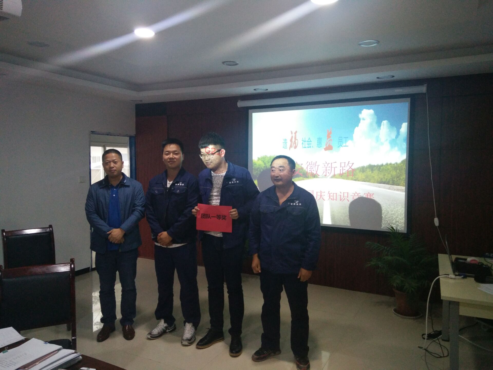 为积极响应国家“安全生产月”活动的号召,贯彻落实集团公司工程项目安全质量责任制工作,继续深化项目全员安全教育活动,增强项目部全体员工生产责任意识,努力营造“比、学、赶、帮、超”的良好学习氛围。2017年9月30日下午,mansion88明升集团阜南G220项目部精心筹划举办了以“迎国庆知识竞赛”为主题的活动。
