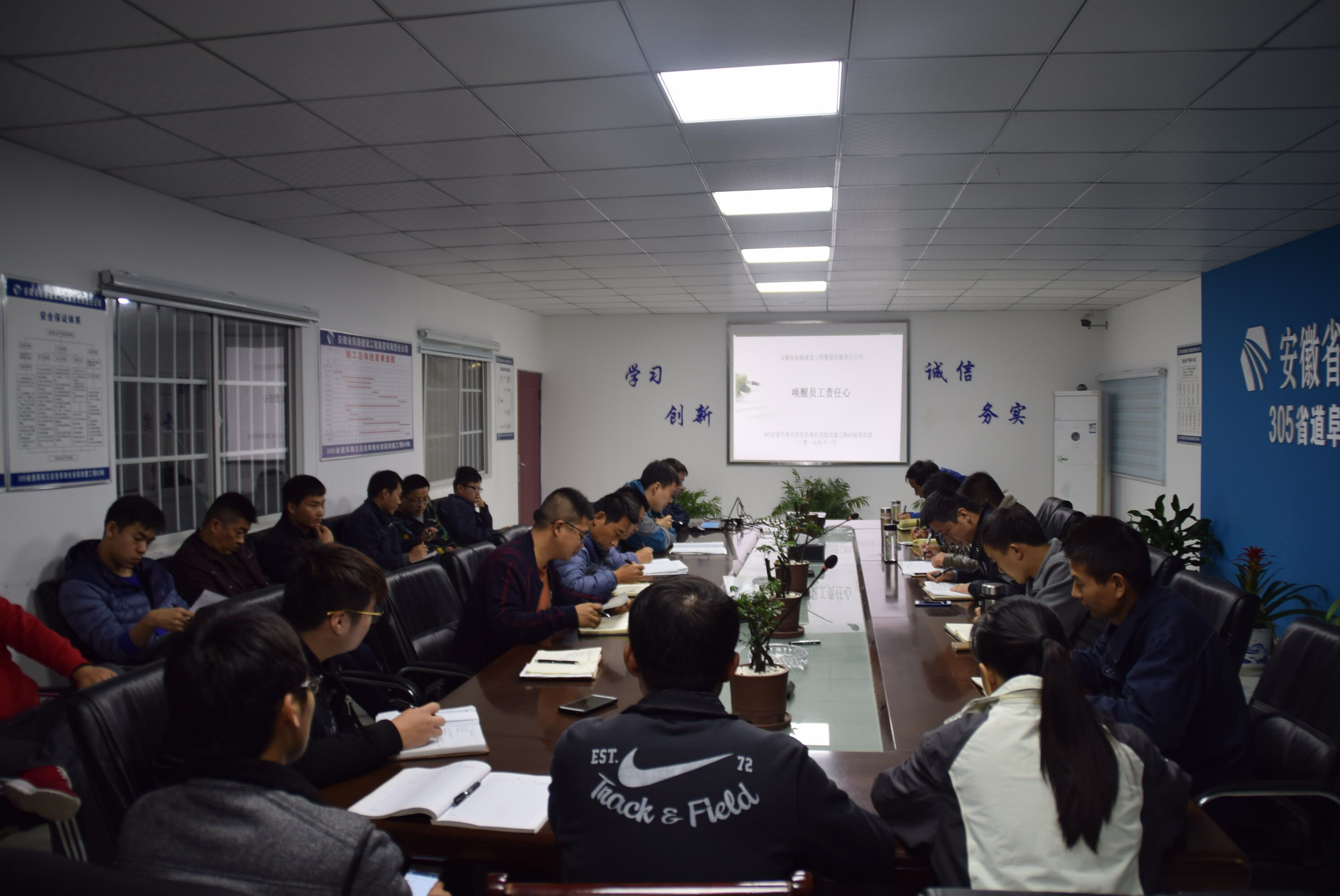 为提高加强员工个人的责任心、调动员工的工作积极性,凝聚员工的向心力,2017年11月5日晚,项目部利用空闲时间开展了“道德讲堂●唤醒员工责任心”培训活动。本次活动采用视频授课及PPT讲解的方式,全体职工一起观看了由蔡鲲鹏老师主讲的“唤醒员工责任心”视频讲座及相关PPT内容,阐明了什么是责任心、如何提高员工的责任心,指出了职工责任心缺失的几点因素、责任缺失的表现,使得员工明确了对待工作应该做到:不抱怨、不推搪、不计较、不解释,进一步强化职工个人责任心,以一个良好的心态对待每一天的工作。