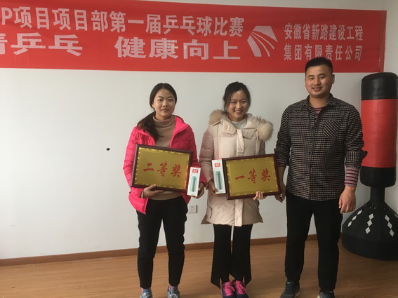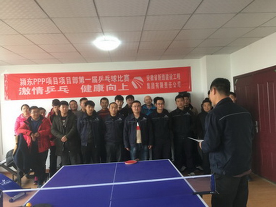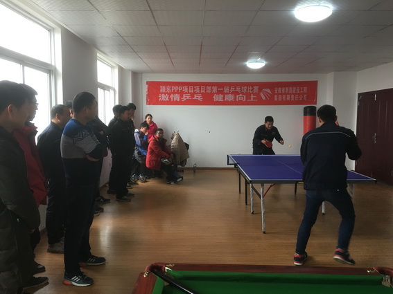 为了丰富员工的业余生活,增加员工的体质,培养员工的团结合作精神,颍东PPP项目部综合办精心组织了一场乒乓球比赛,经过半个月的紧锣密鼓的精心筹备,于12月3日下午拉开了帷幕。