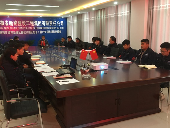 2017年12月15日颍东新城区棚改及园区配套工程PPP项目项目部人员学习爱岗敬业谱写美丽人生《渠丽珍先进事迹》。