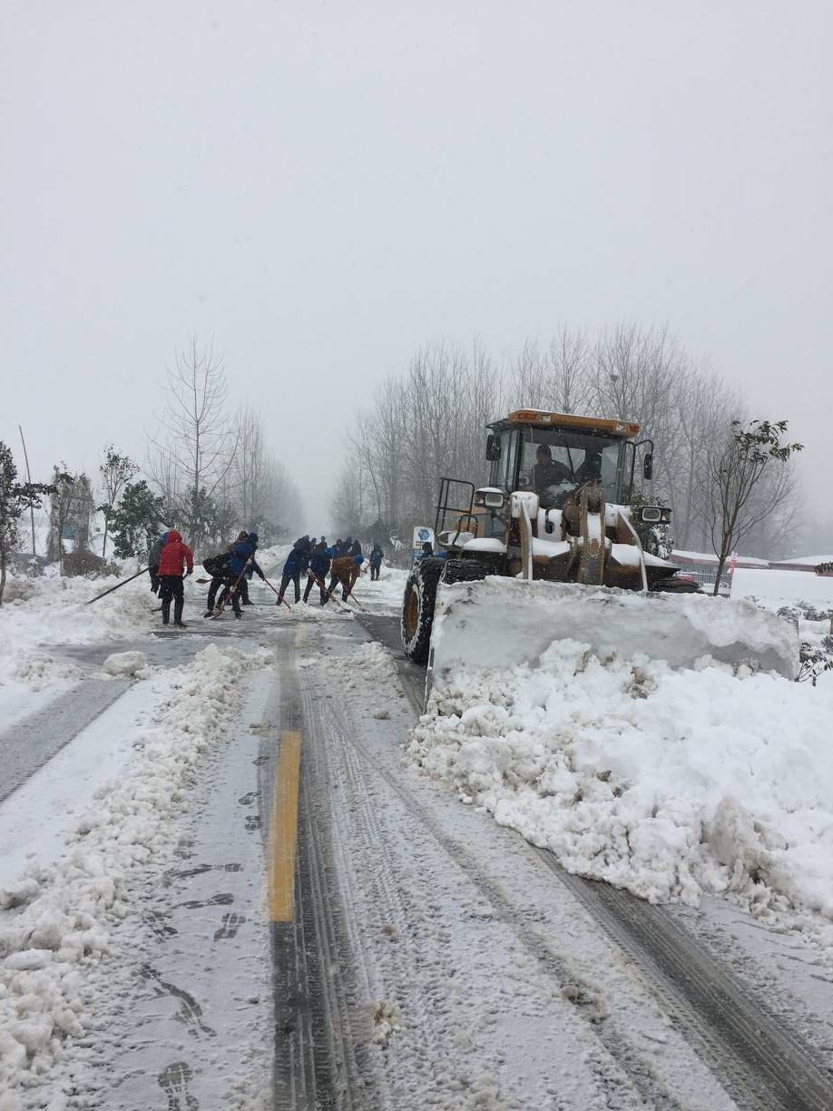 入冬以来,阜阳市迎来第一场暴雪,经过一夜暴风雪肆虐,大雪给阜南道路交通带来很大程度的影响及安全隐患。1月4日早上8点,mansion88明升建设集团路友志愿者积极响应阜南县委县政府的号召,G220二标项目部领导层率先组织并带领项目部全体同事人员拿着铁锨、扫帚上路开展除雪清障工作,来到城区路段清除积雪。“人机配合”-装载机在前推,同事们在后清扫,全天守候阜南S202与S328交口,X056等交通要道,确保冰雪覆盖的道路重新变得通畅起来。为阜南人民群众开通一条安全通道,切实保障人民群众正常通行,提高大家生命安全保障。