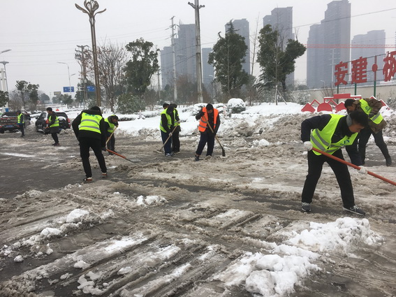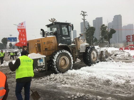 2018年1月5日早上7点钟颍东新城区棚改及园区配套工程PPP项目部领导带领项目部人员、班组人员以及大型装载机准时出发参与城市主干道路义务除雪活动。在各负责人带领下,大家冒着严寒,拿起铁锨,在北京路立交桥道路段进行积雪集中铲除。大家人手一把铁锨,你一铲我一铲,配合装载机将道路上的积雪推向路两旁,完全不顾风雪带来的寒冷,坚持抗寒一线,受到了公路上来往居民的一致好评,树立了mansion88明升建设集团公司路友志愿者的良好形象。