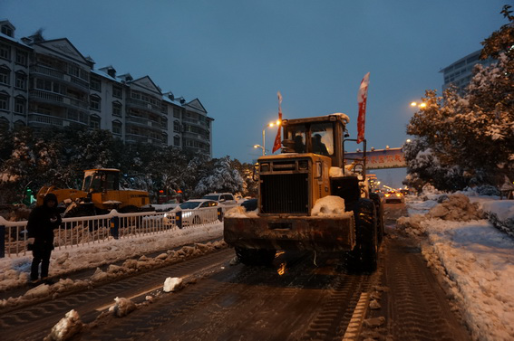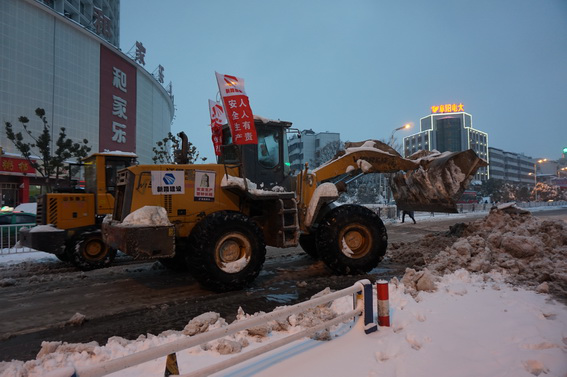 中午12时许,市里雪况紧急,我部紧急成立以“肩负社会责任,为百姓造福”为宗旨的临时志愿者小组,立即行动,对市中心雪况进行勘察和分析,谋无遗策,制定市中心抗雪防冻方案件,同时,秣兵历马,机械、工具整装待发。下午2时,项目经理张仕龙带队,总工董国庆任副总指挥,奔赴颍州路。机械轰隆,除雪忙;众志成城,路通畅。深夜,他们身体疲惫了,鞋帽湿透了,可是,他们笑了,带着喜悦、带着安心满意归来。