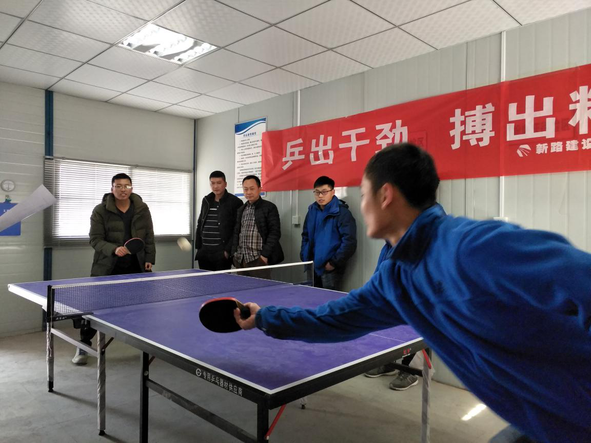 在这即将迎来新春之际,为丰富员工业余生活,加强各部门之间的联系交流,增进员工之间的友谊,营造和谐的项目部文化氛围,提升员工参与体育活动、锻炼身体的积极性,特举办此次以“乒出干劲,搏出精彩”为主题的乒乓球比赛,比赛在2月3日下午正式开始。
