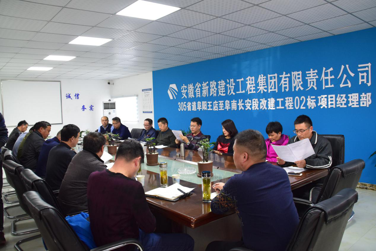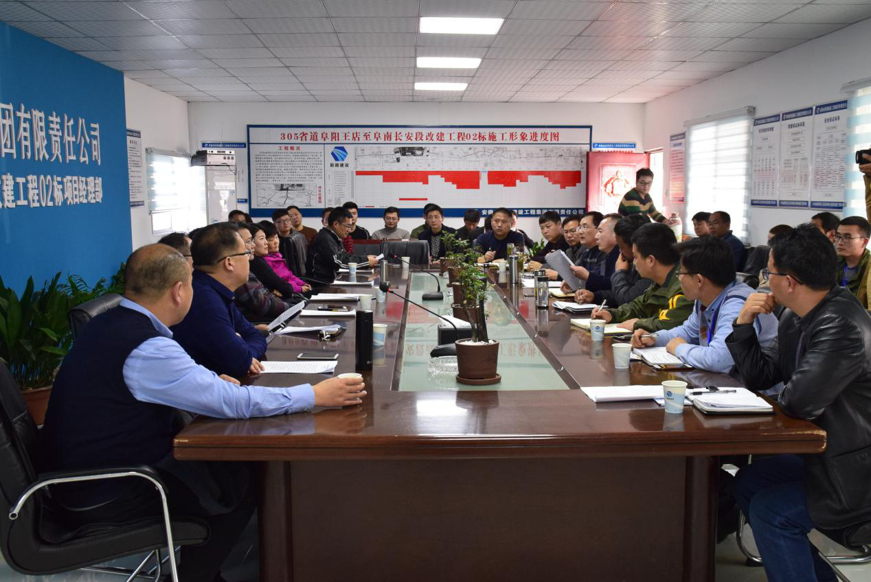 随后,虢磊一行在305省道阜阳王店至阜南长安段改建工程02标项目部会议室进行了节后复工会议。会议中,项目办领导2017年度完成情况、节后复工情况以及2018年主要工作节点目标及存在的问题进行了详细的汇报,虢总在听取汇报内容后,对施工过程中存在的施工环境问题、材料上涨问题等给出了具体的解决措施,要求重视驻地建设,重视场站环保建设,同时交投公司也将协助施工单位解决目前施工中的各种问题,希望大家共同努力克服困难,确保完成目标!