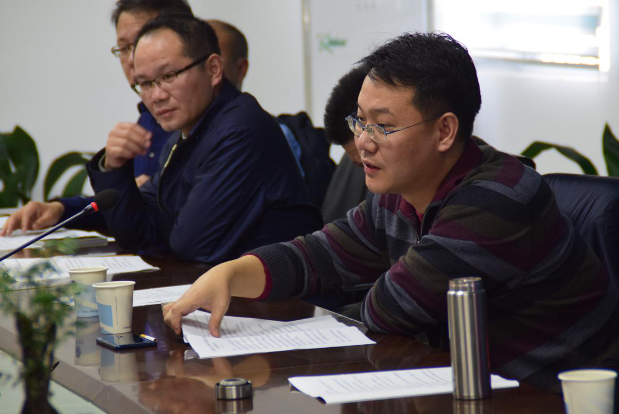 虢磊一行在认真听取工作报告