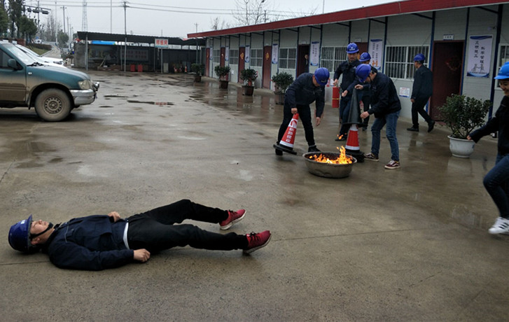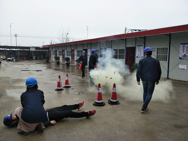 为了提高全体施工人员的消防意识,增强对火灾扑救工作的组织能力和处理能力。以及在处理突发事件过程中各部门之间的协调配合。牢固地树立消防安全意识,及时消除各类火灾隐患,落实“预防为主,防消结合”的消防方针,提高施工现场人员的自救和互救的能力,我部于2018年3月19日在项目部举行了消防及应急救援演练。