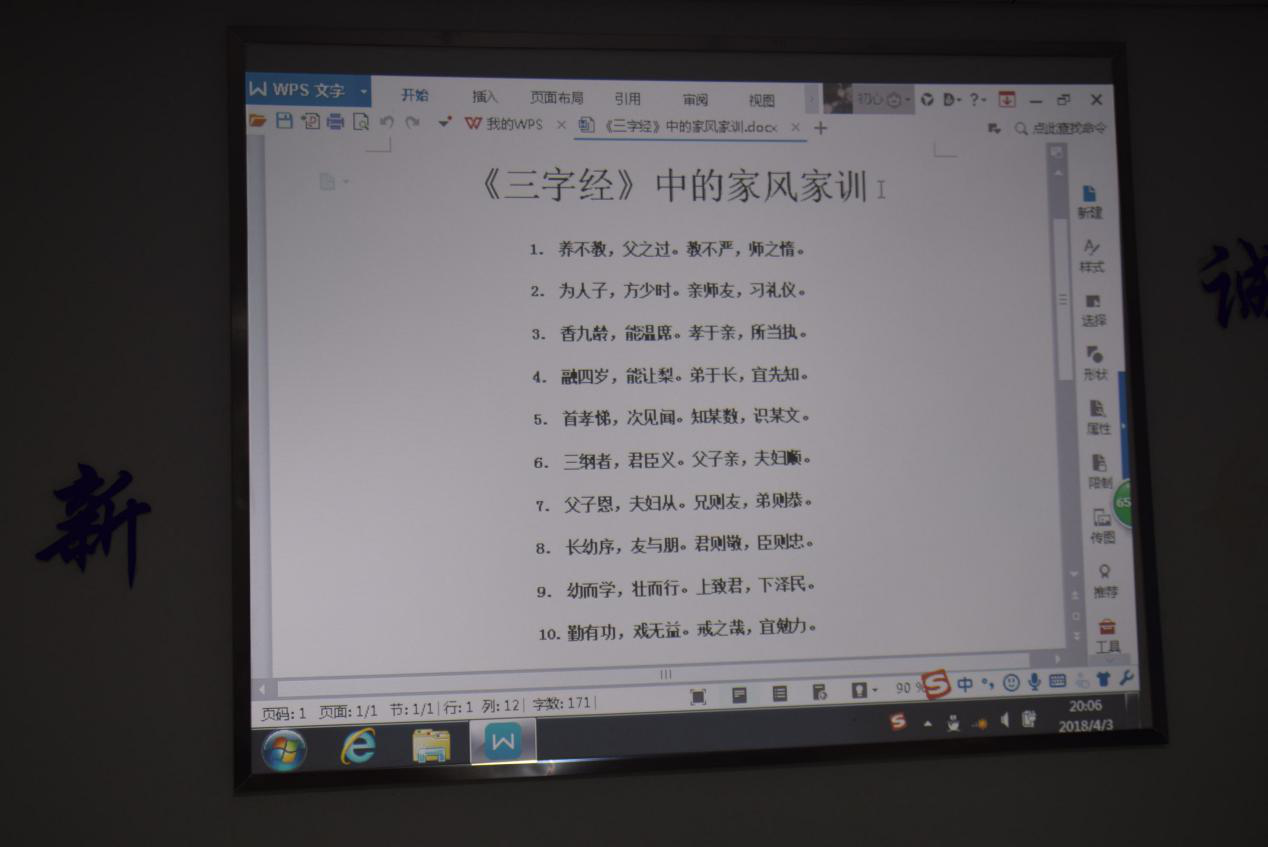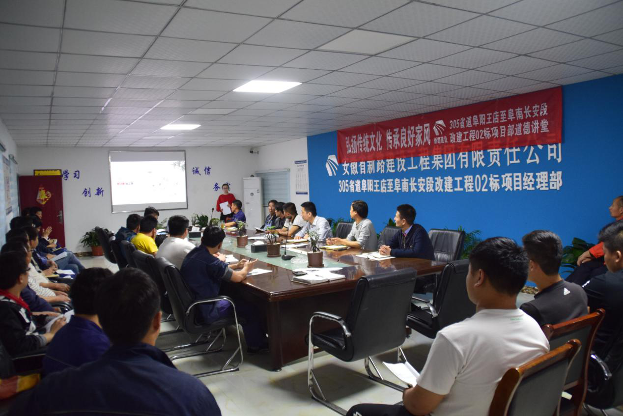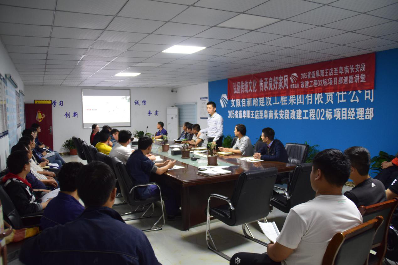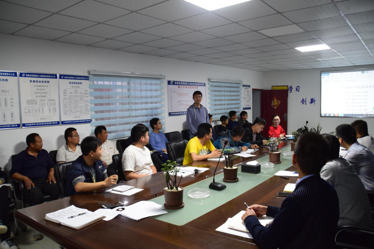 习近平同志曾明确指出:“家庭是社会的基本细胞,是人生的第一所学校。不论时代发生多大变化,不论生活格局发生多大变化,我们都要重视家庭建设,注重家庭、注重家教、注重家风”,并且多次强调了家风建设的重要性。为了深入学习习近平总书记的指示,2018年4月3日晚上19:00,305省道阜阳王店至阜南长安段改建工程02标项目部利用晚饭后空闲时间,组织项目部人员进行了一次“弘扬优良家风——道德讲堂”活动。首先通过PPT讲解的形式,详细的讲述了家风是什么以及如何建立良好的家风。紧接着对中国传统家风家训进行了赏析,深入学习了中国传统优良家风及其传承历程。随后,项目部全体人员集体诵读了《三字经》中有关家风家训的节选,深切的感受了先人关于家风的教诲,既弘扬了中国传统文化,又培养了大家的家风意识。最后,项目部人员积极地发表了对此次活动的感想,相互交流了学习心得。