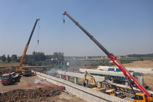 截至目前,本项目600片T梁已预制228片,预计7月份进行永丰河桥T梁架设,8月份人民河桥、无名沟桥T梁架设陆续开展,9月底T梁架设全部完成。