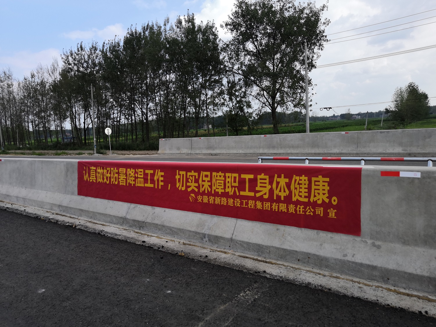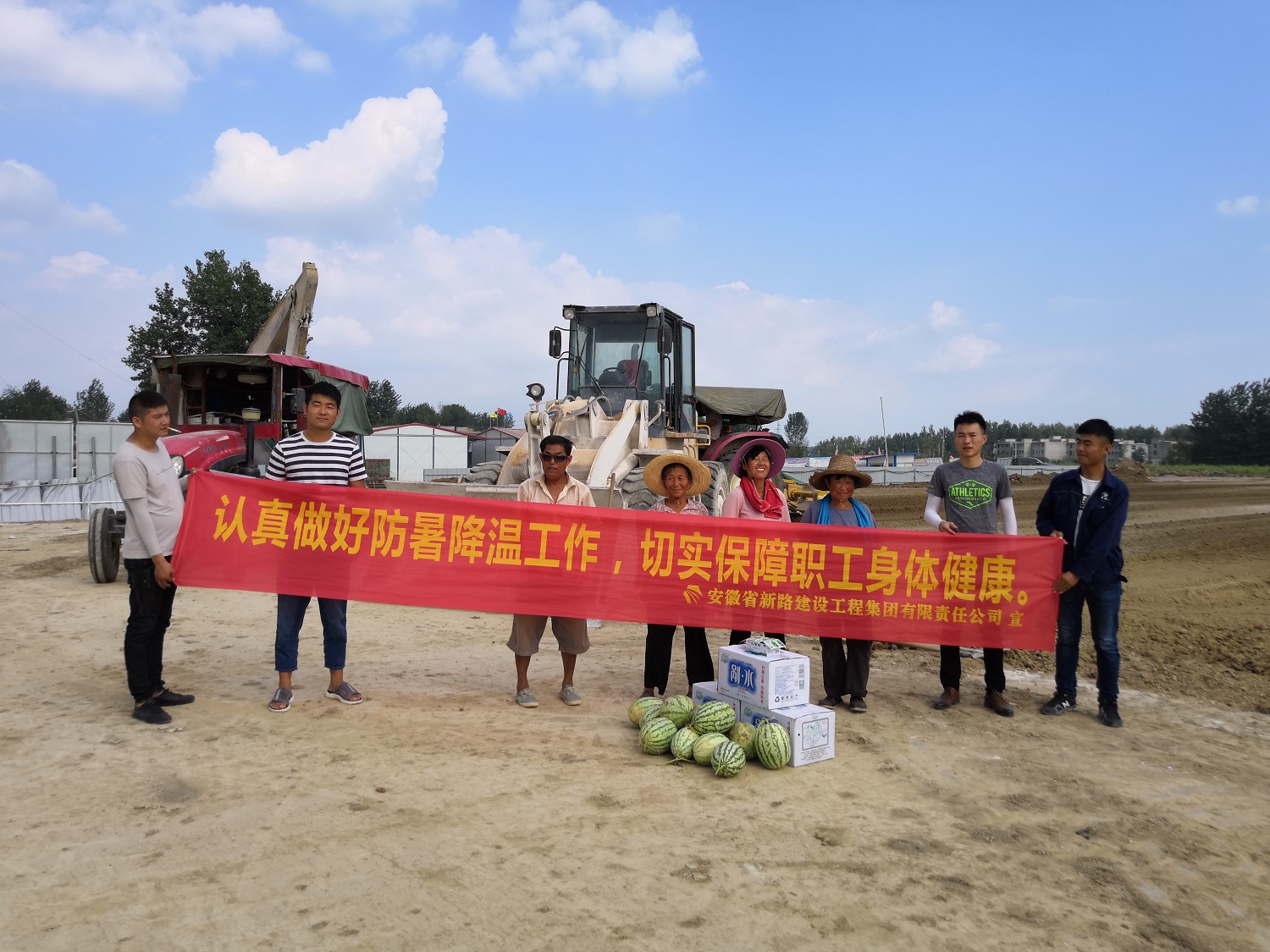 施工现场“认真做好防暑降温工作,切实保障职工身体健康”条幅宣传