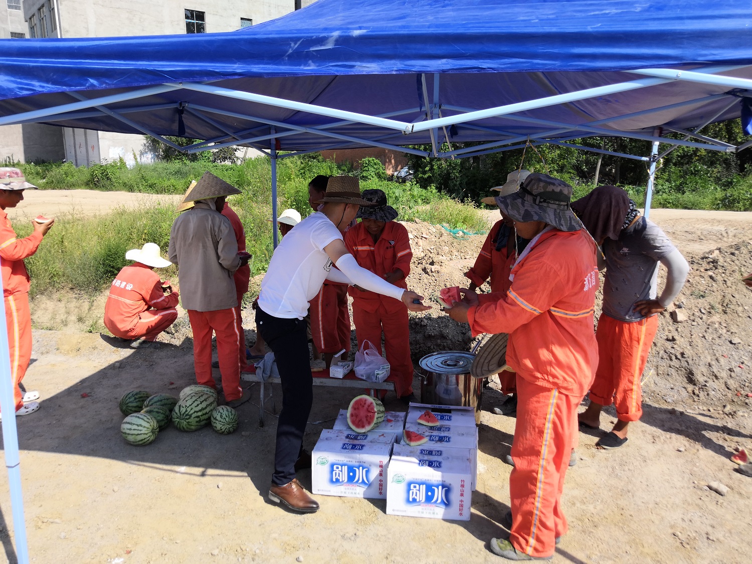 G220项目部为护栏班组一线工友发放防暑降温用品