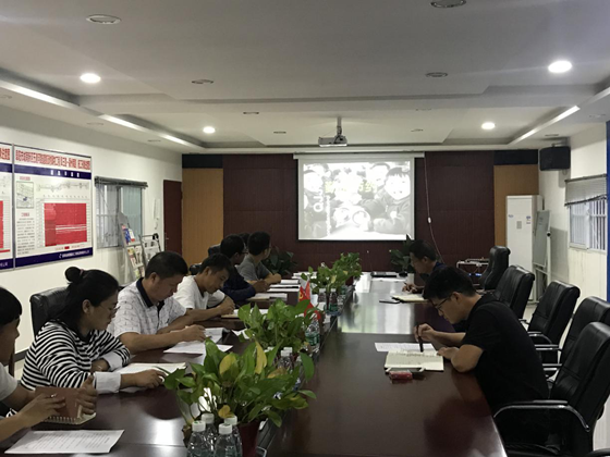 员工认真观看勤俭节约教育宣传片