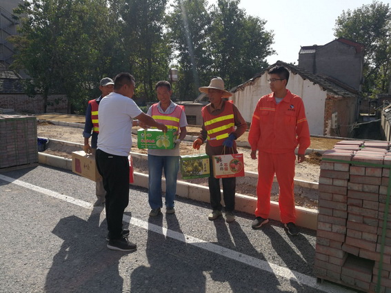 在中秋佳节来临之际,为了让在这个团圆的节日里仍坚守在施工一线的班组度过一个欢乐、温暖的节日,我部杨经理与2018年9月23日上午走进施工现场,为他们送去水果、月饼等慰问品,并致以节日的祝福。