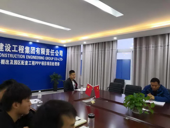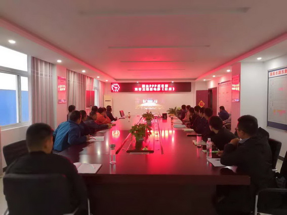 图片为:观影结束后,项目部成员在薛鸿儒经理的带领下积极发言