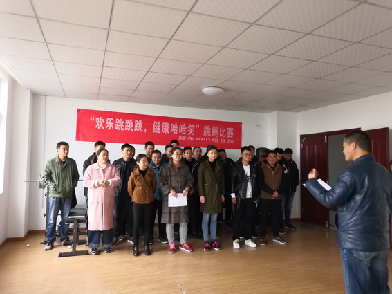 2018年11月17日下午,颍东PPP项目部全体成员在项目部文体活动室举行了一场以“欢乐跳跳跳,健康哈哈笑”为主题的跳绳比赛。工作人员和参赛选手准时到达,同时并邀请了监理与审计单位人员参加。