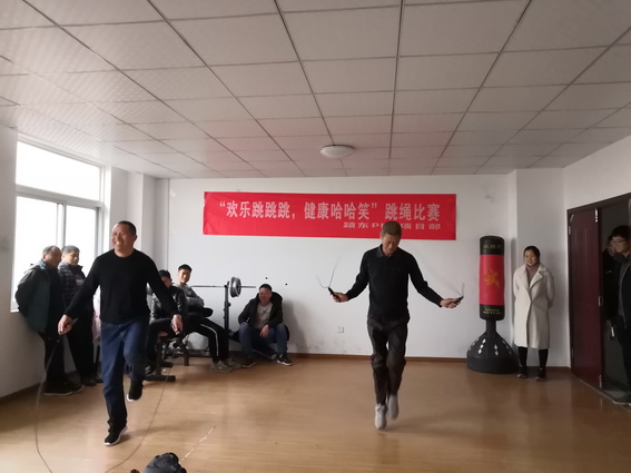 此次比赛项目为单人跳,限时2分钟。以规定的时间内跳次数最多者获胜。热身阶段,大家互相交流、指点、分享技巧,场面异常活跃,其乐融融;比赛时,大家都使出浑身解数,你追我赶,超越对手,超越自我,争当第一,有的选手不时被跳绳绊住,随后迅速调整,立即又进入比赛状态。比赛现场,欢声不断,喝彩声连连。在场人员不管是观众还是比赛队员都非常兴奋,最后以工程科李向龙2分钟取得个人好成绩摘得桂冠。