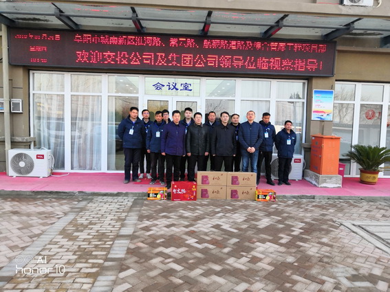 1月24日上午,市投发集团总经理、交投公司董事长兼总经理虢磊,交投公司监事会主席江玉友一行在mansion88明升建设集团董事长唐谦、总经理韩恒忠的陪同下莅临阜阳市城南新区淮河路、紫云路、航颍路道路及综合管廊工程项目部,对节日期间坚守工作岗位一线的综合管廊项目部全体人员进行了慰问,给他们带去了牛肉、水果等慰问品。