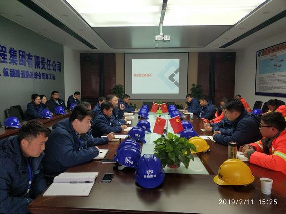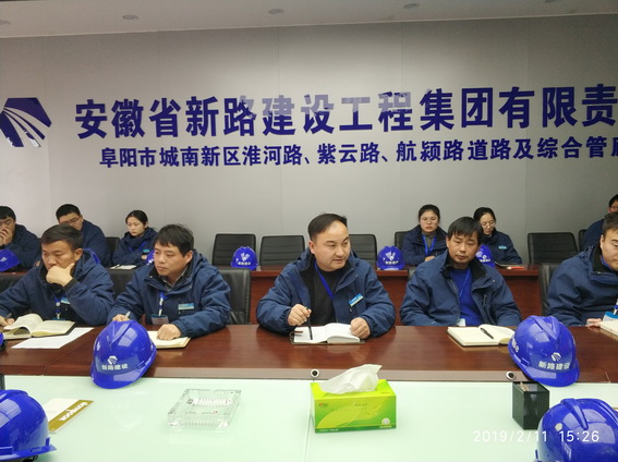 2月11日下午,阜阳市城南新区淮河路、紫云路、航颍路道路及综合管廊工程项目部召开节后开工动员会,项目部全体人员及各工区班组长参会。