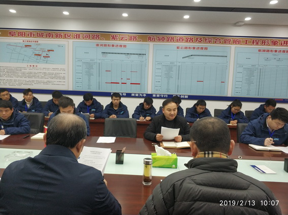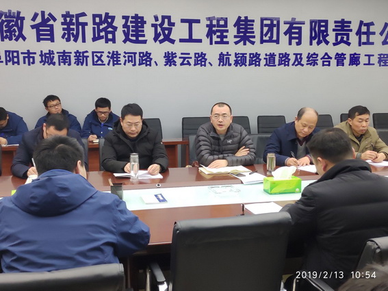 为推进项目各项工作开展,提高项目管理水平,集团公司董事长唐谦、总经理韩恒忠等领导班子成员于2019年2月13日莅临阜阳市城南新区淮河路、紫云路、航颍路道路及综合管廊工程项目部开展调研工作。