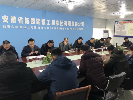 2019年2月12日下午,集团公司董事长唐谦、总经理韩恒忠等党政领导班子成员到阜南淮公路项目部开展调研工作。