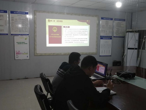 安全负责人王振带领大家学习《生产安全事故应急条例》